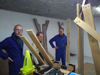 Lundi 27 février: ayant validé le principe d'une alternance de crochets longs et courts, nous en réalisons une quinzaine et y installons les vélos.